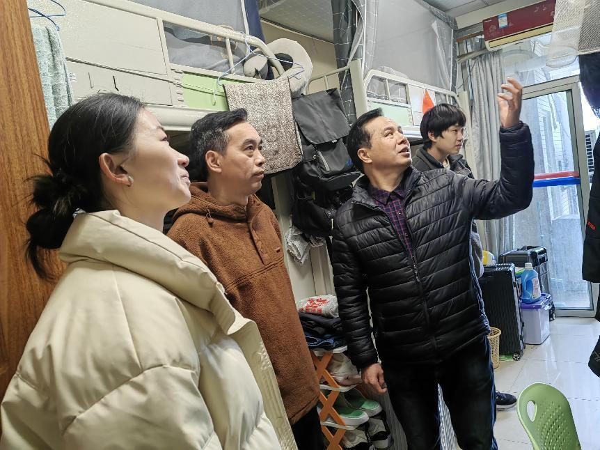 在本科生宿舍,明书记询问同学们的寒假生活及返校情况,耐心细致地回答学生的问题,叮嘱学生要加强自我防护,提高安全防范意识,特别叮嘱大家尤其是寝室用水用电方面,要做到人离寝,电关紧。同时提醒大家要注意人身财产安全,谨防诈骗,遇到困难第一时间联系辅导员。
