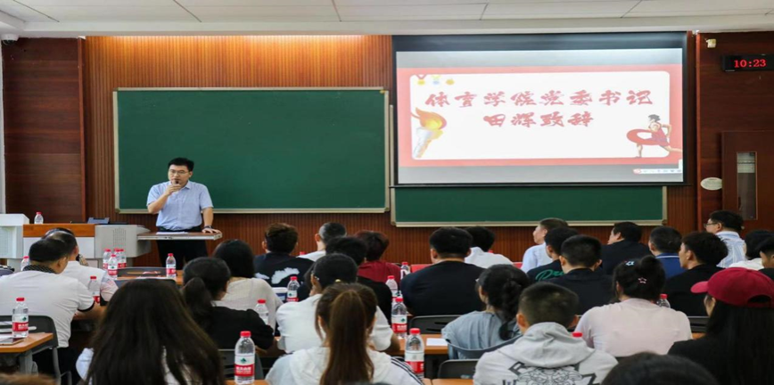 在读学生代表郭添文,本科新生代表谭龙,研究生新生代表杜明洋三位同学相继发言,在他们的发言里,师兄分享了自己的宝贵经验,展现了体院学习生活的丰富多彩和无限可能;刚入学的新生充满了对大学生活的展望,对未来生活的憧憬;考研成功的研究生则分享了自己“轻舟已过万重山”的喜悦。