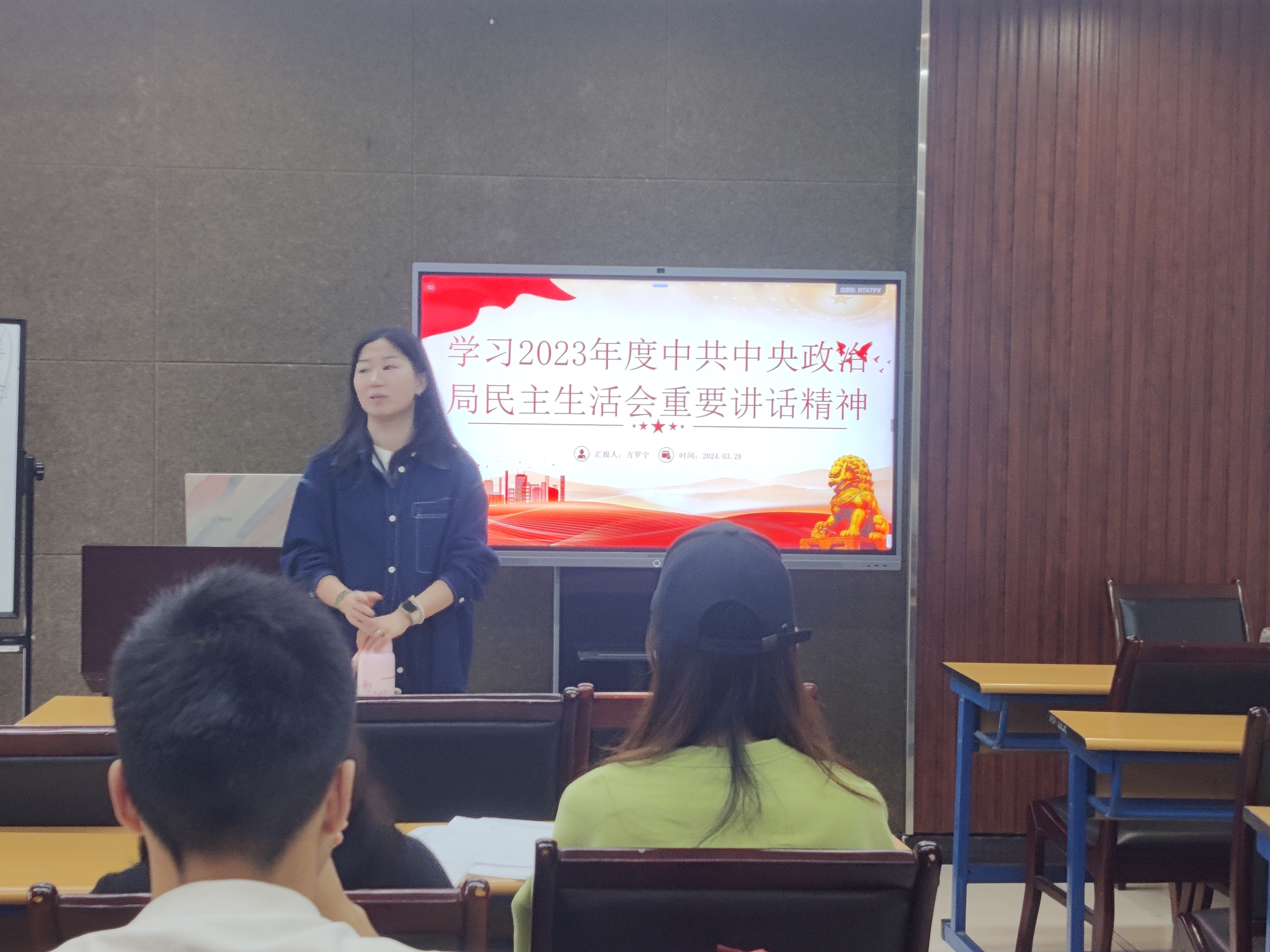 会议首先开展党员专题学习党章,由汤婕带领大家学习党章,并着重强调了党的组织制度和党的纪律。由方罗宁同志带领大家学习习近平总书记在2023年度中共中央政治局专题民主生活会上的重要讲话精神。学习过程中,同志们就“两个确立”“民主集中制”“我们有哪些自我革命的地方?”等问题进行了回答和讨论,方罗宁在领学时着重强调了要勇于自我革命,要具备政治敏锐性。
