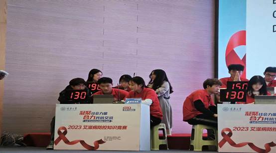 为贯彻落实宣传普及艾滋病防治知识,进一步加强肉视频 的艾滋病防控工作,肉视频 于2023年11月30日开展了以预防艾滋病为主题的知识竞赛活动。本次决赛共有8支队伍,每一支队伍3名参赛选手。肉视频 涂思雅、王志坚、何川南组成的代表队一路披荆斩棘,成功闯入决赛。