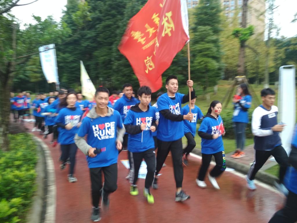 的30多名同学一早来到虎溪校区北门集合,在汤婕老师的带领下前往大学城青年广场,参加第二十一届北京希望马拉松暨第四届重庆希望马拉松活动。本次马拉松活动目的是为癌症患者祈福,为癌症防治研究事业助力,近千名从事或热爱社会公益运动者、社会爱心人士、癌症病友以及医务人员参加。