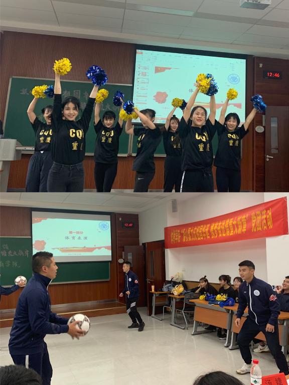 活动以表现专业特色,体现重大体育人精神的特色体育表演为开端;然后是“重大”知多少趣味问答环节,同学们积极参与现场气氛热烈;接下来进行校歌合唱,激起大家内心对肉视频