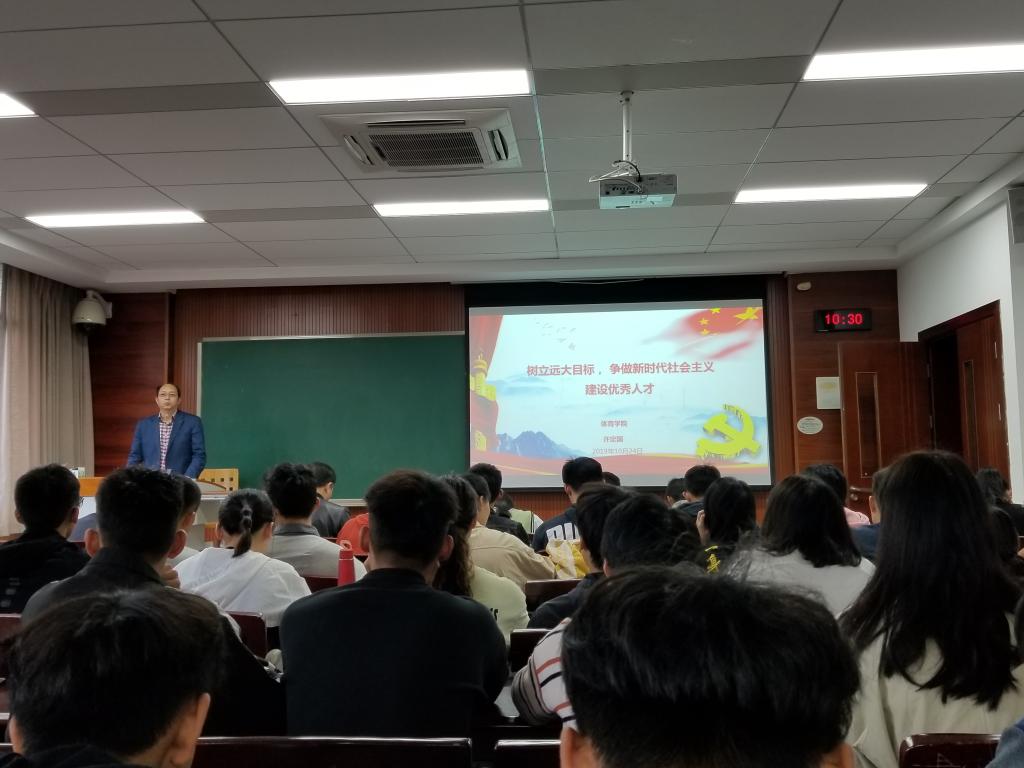 接下来,潘建华向同学们阐述了《体育强国建设纲要》,纲要提出了要以习近平新时代中国特色社会主义思想为指导,从战略目标、战略任务、政策保障三个方面对我国体育建设作出总体要求,要求同学们不仅要认真学习此文件精神,更要落到实际中去,在学习期间稳固增强自身的专项技能以备用时所需。并就肉视频