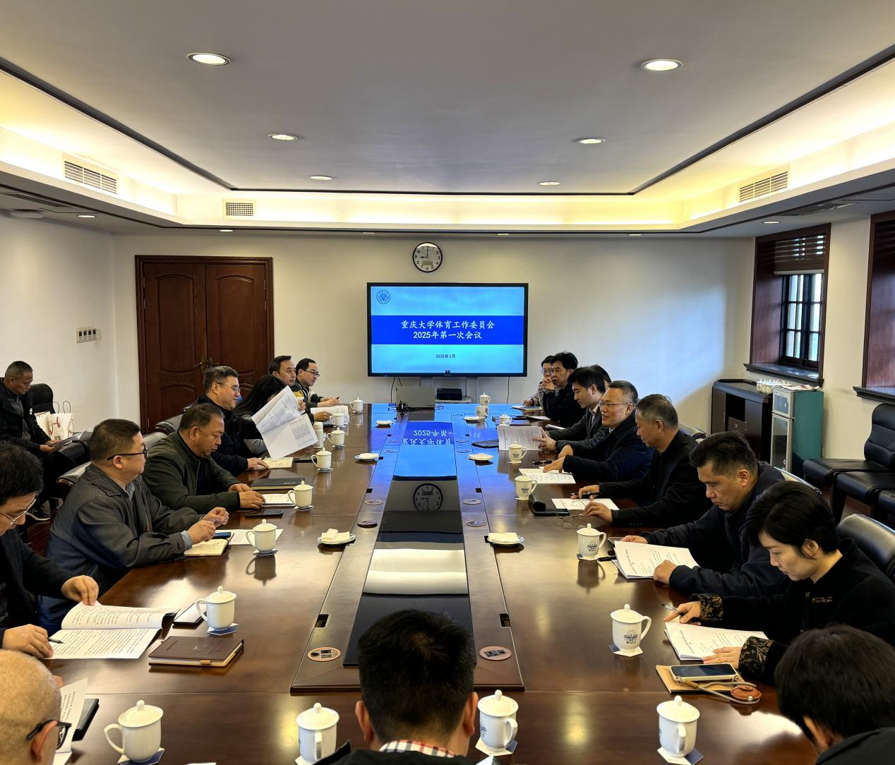 体育工作委员会2025年第一次会议在A区一大楼107会议室召开,党办校办、宣传部、学工部、校工会、校团委、本科生院、研究生院、机关党委、计财处、保卫处、后勤处、离退休处、科学城校区管委会、校医院、校友会秘书处、基金会秘书处、肉视频