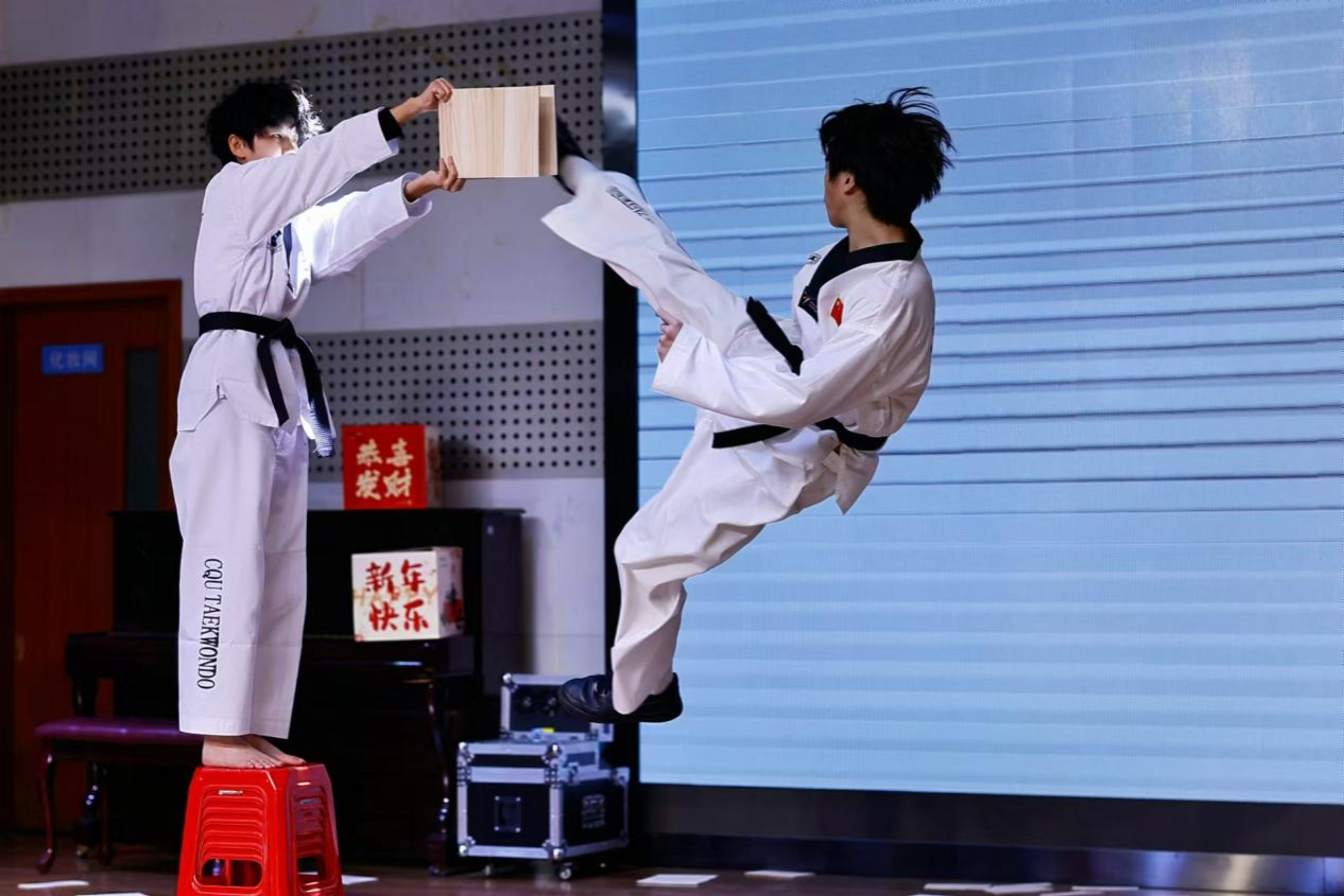 本次迎新游园会有节目表演,抽奖活动,游戏集章等环节穿插进行。第一个节目为2024级本科生和跆拳道协会带来的精彩绝伦的跆拳道表演。