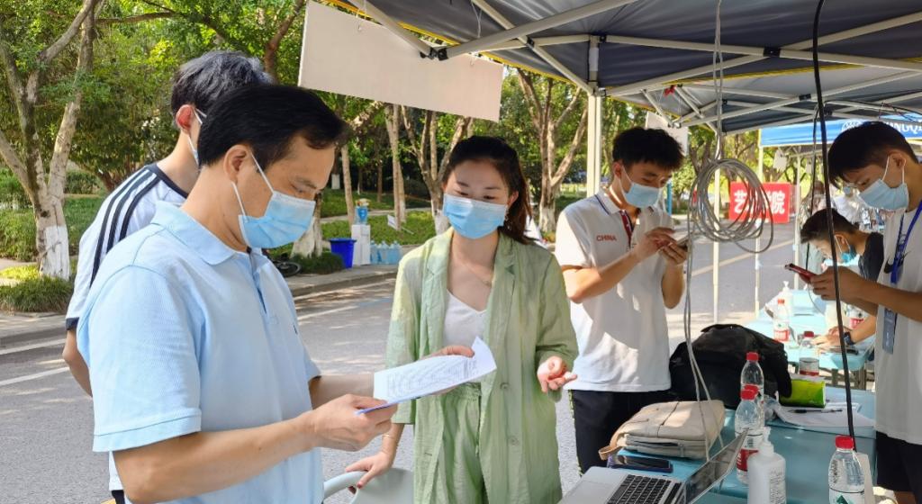 党委副书记李永、团委书记兼本科生辅导员汤婕、研究生辅导员刘朝霞以及高年级的同学们在迎新点热情接待,欢迎新同学的到来。