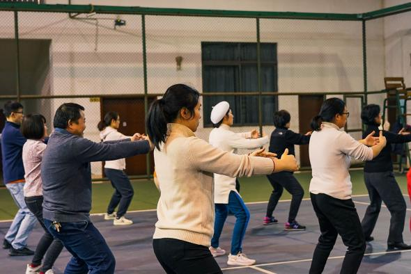 刘磊矗教授组织下进行了八段锦的授课和演练学习,刘教授细心讲解,老师们认真学习。