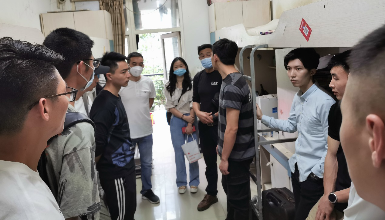 在兰园二栋,邱荣富书记许定国院长了解了同学们疫情期间在家里的学习生活情况,询问同学们返校后有什么困难,鼓励大家抓紧学业,做好毕业前的相关工作,珍惜毕业前夕在校的每一天时光。