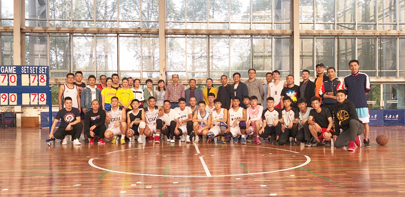 组织在校本科生研究生联队与校友队进行篮球友谊赛。