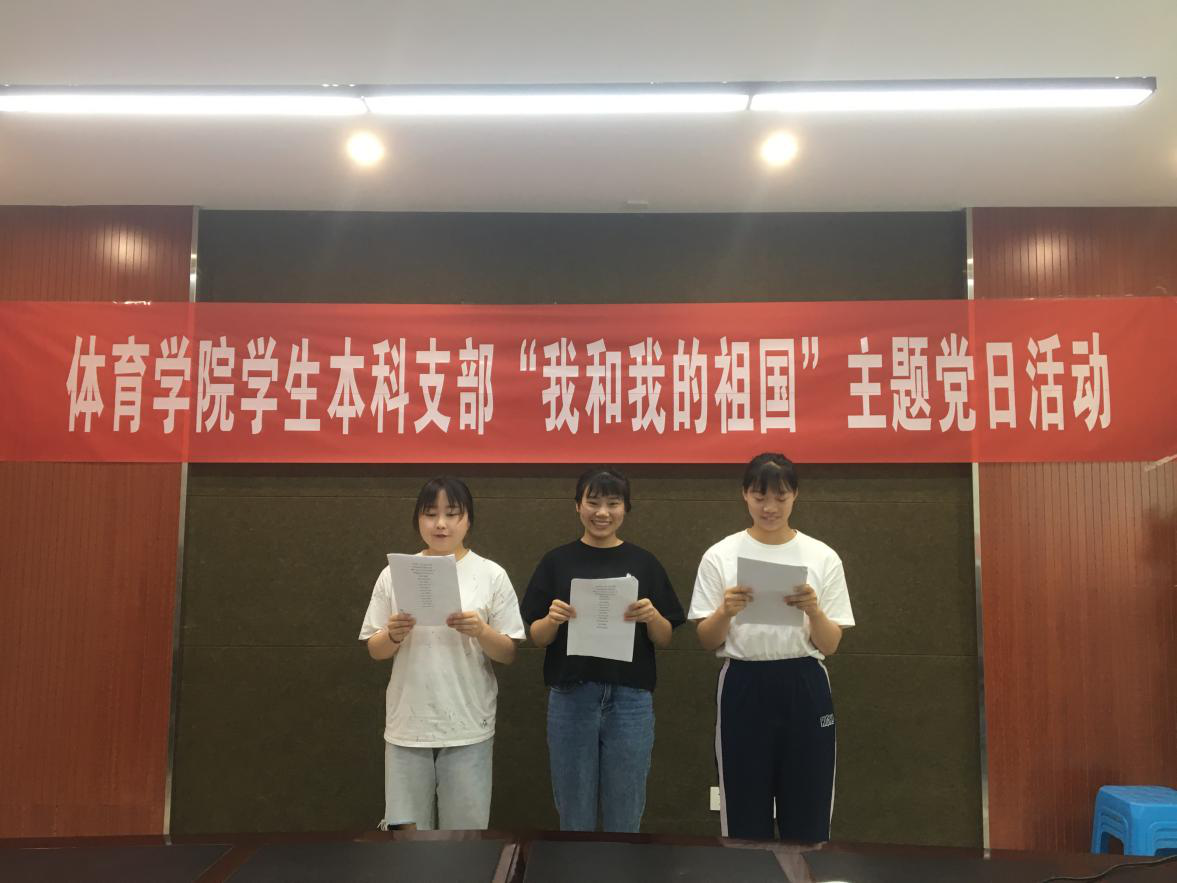 本科学生党支部举办了“我和我的祖国”爱国主题组织生活会。参加此次活动的有体育学组织员陈亭,团委书记汤婕、本科生党团员代表、党员发展对象以及2017级全体学生。