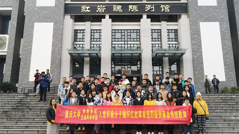 党员发展对象面对党旗和入党誓词进行了庄严的入党宣誓。随后同学们陆续进入红岩魂陈列馆缅怀革命先烈,并扫描指示牌中的二维码,获取红岩魂陈列馆中相关资料介绍,在陈列馆中,同学们认真了解革命历史和烈士们的英勇事迹,大家深深体会到:大家今天的幸福生活是无数英雄先烈们在战火纷飞的年代用他们自己的年轻生命换来的。红岩精神是共产主义精神、民族精神、时代精神的结晶及在抗日战争时期国统区的特殊表现形式,是中国共产党优良传统与作风在特定历史环境中的体现,也是中华民族的宝贵精神财富。