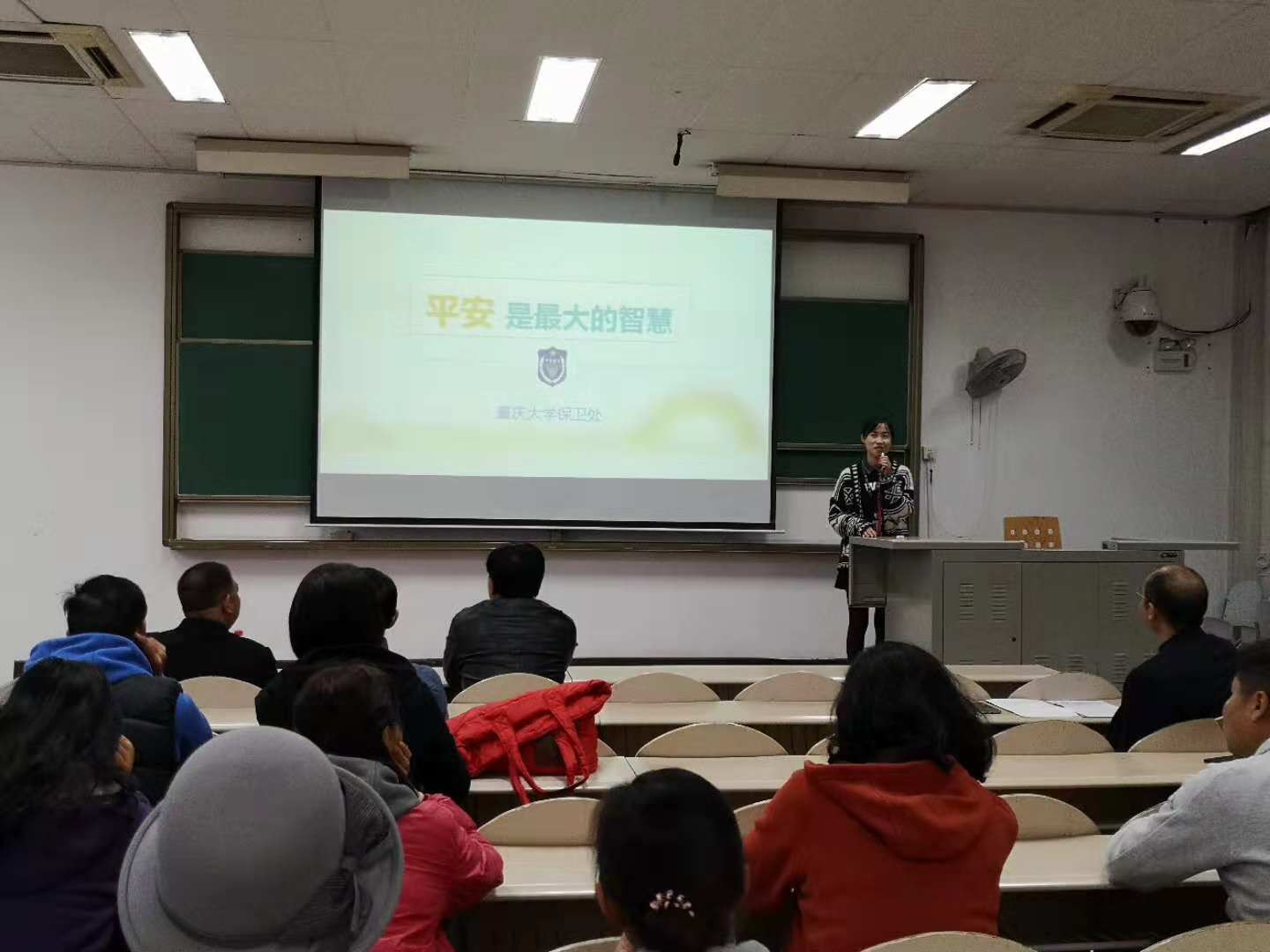 党委书记邱荣富主持,邀请了保卫处消防交通科的肖雨诗老师担任主讲。