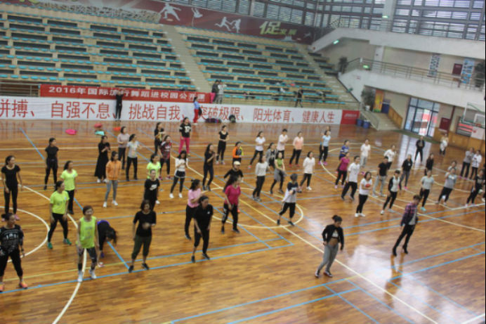 A区体育馆举办了世界巡回“国际流行舞蹈课程进校园”肉视频