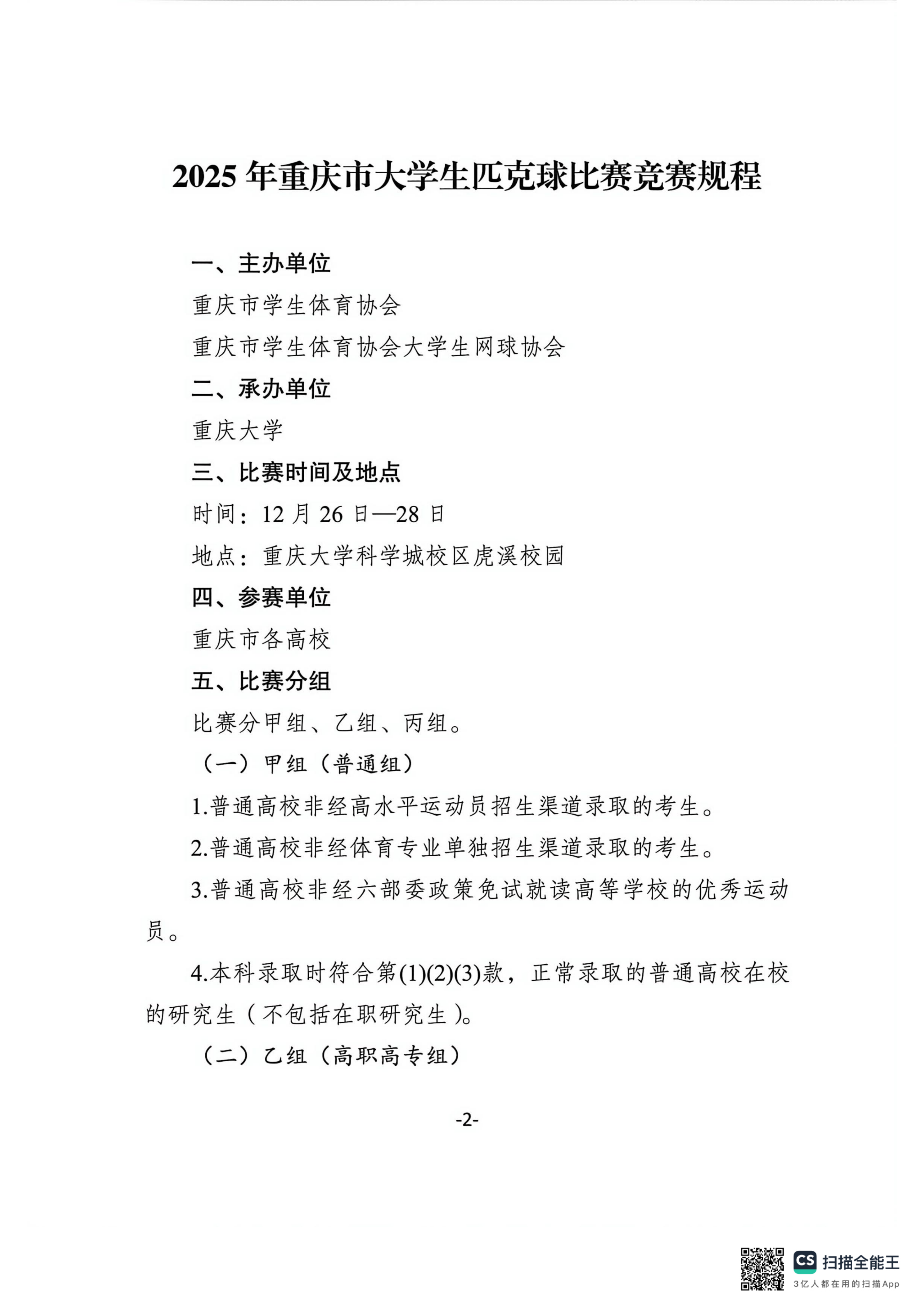 2025年重庆市大学生匹克球比赛