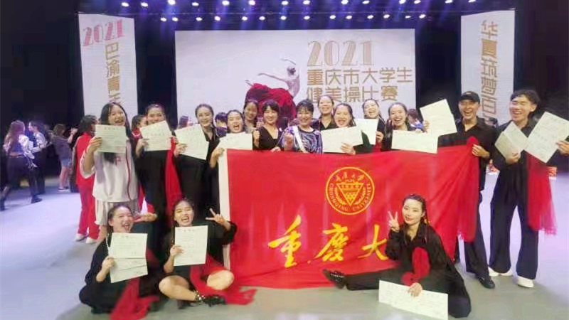 健美操队一路披荆斩棘,过关斩将,最终以优异的战绩夺得2021重庆市大学生啦操和排舞大赛的两个冠军。