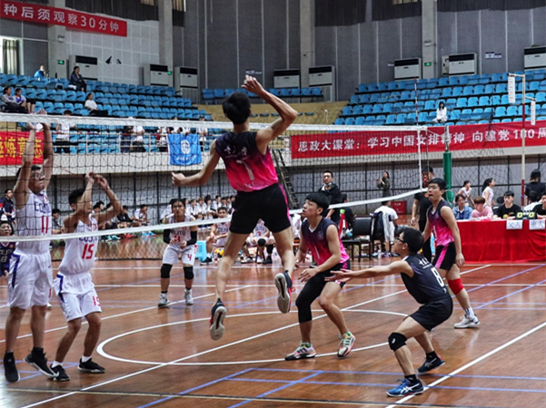 男子排球队的冠亚军比赛,为队员们加油助威。