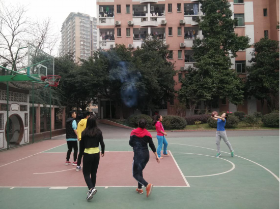 每天他们除了基本的课程教学外,有时会在内部组织男女混双篮球比赛。看,大家在比赛场上争得不相上下。